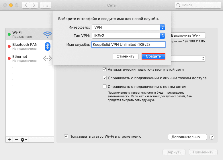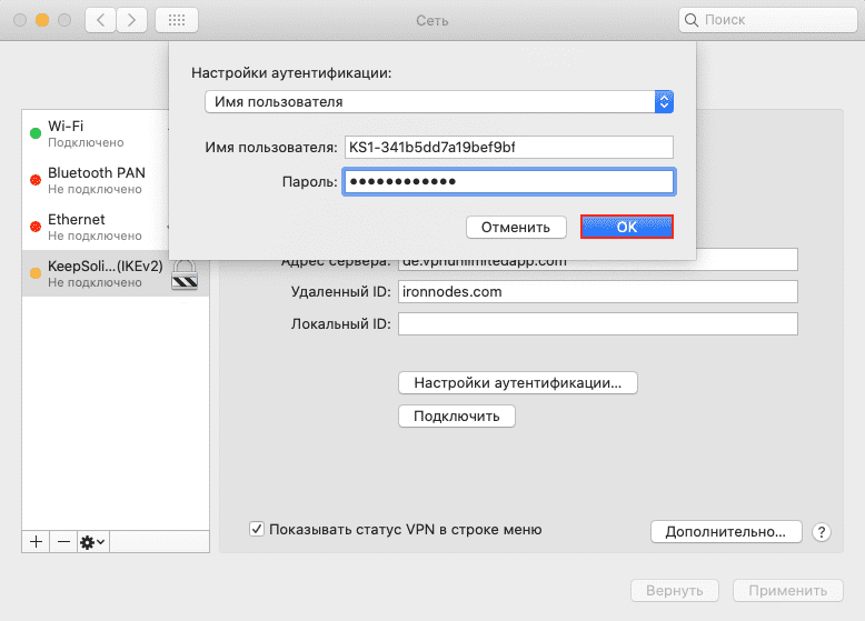 Как я могу подключиться к VPN-серверу по IKEv2 на macOS?