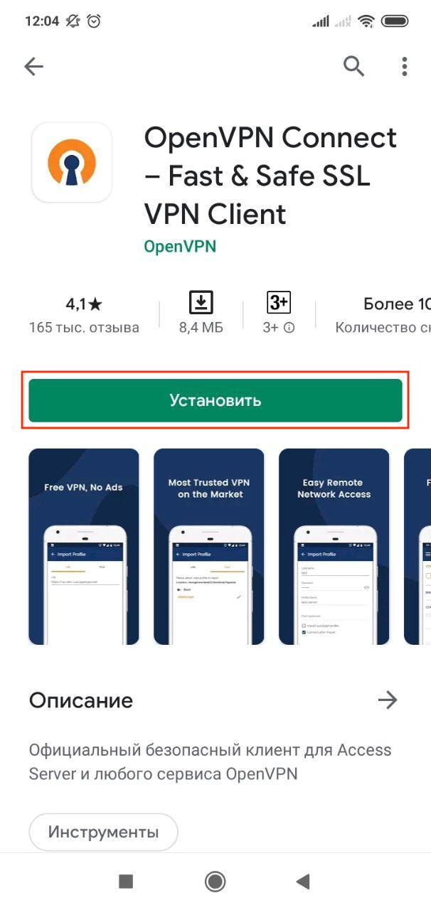 1. Перейдите в Play Маркет и установите приложение OpenVPN Connect на ваше Android устройство.