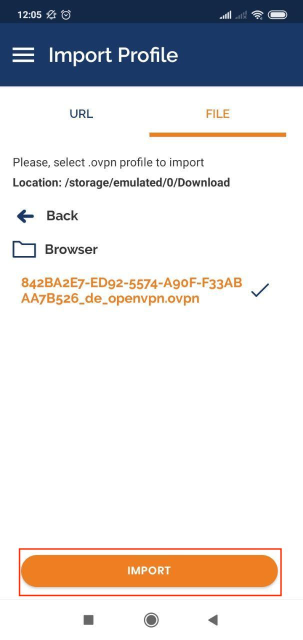 3. Выберите соответствующий файл с VPN конфигурациями, нажмите Import.
